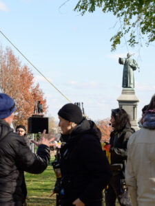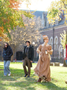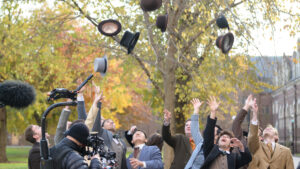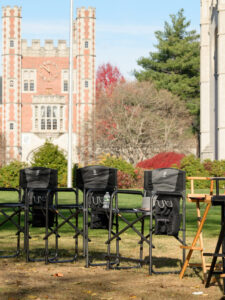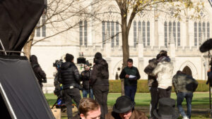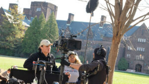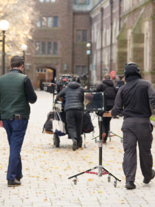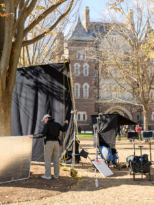 Len Murach, the location manager and assistant production manager for The Artist, grew up in Southington, Connecticut, and has scouted Trinity as a possible filming location for various projects in the Hartford area since 2020. “The scheduling worked because our filming days coincided with the Thanksgiving break,” he said. “We had the two days just before Thanksgiving and, in those two days, we were able to shoot 30 scenes in 11 locations with little to no disruption to the students.”