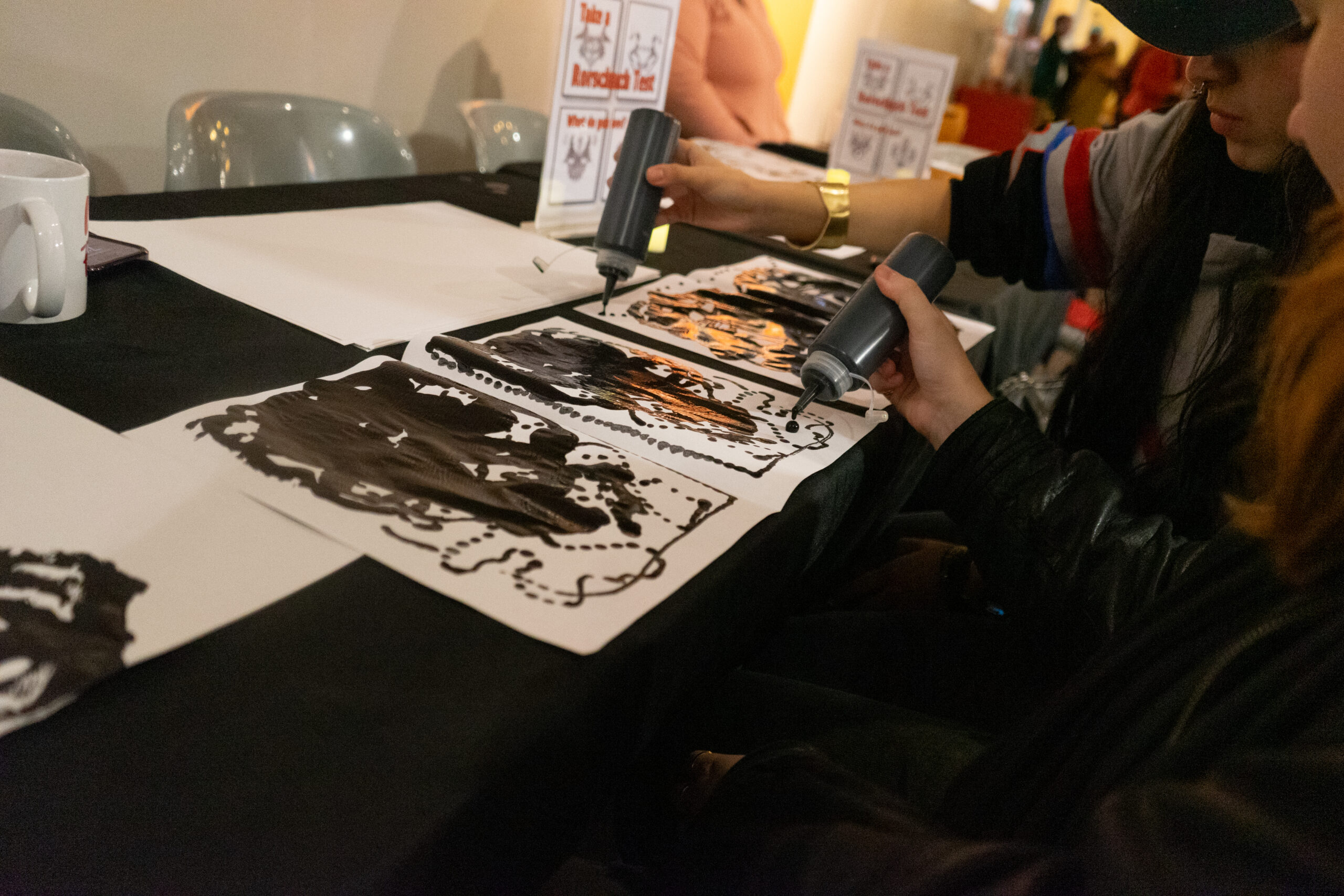 Creative Cocktail Hour is a monthly event hosted by Real Art Ways in their gallery space at 56 Arbor Street. CHER organized transportation and tickets for a group of Trinity students to attend as part of their “Night Out In Hartford” series. Photo by Lilly Supples ’26.