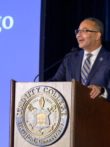 “The search committee was impressed immediately by Dan, who stood out above a highly competitive pool for his track record of accomplishments and for his deep commitment to the value of a liberal arts education and to fostering a sense of belonging on campus,” said Lisa Bisaccia ’78, chair of the Trinity College Board of Trustees and of the presidential search committee. “We particularly noted Dan’s ability to steer institutions toward enduring financial strength while amplifying their brand and deepening campus pride.”