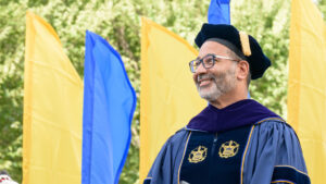 The Inauguration of Daniel G. Lugo as the 23rd president of Trinity College will take place on Saturday, October 18, 2025. The ceremony begins at 9:00 a.m. in the George M. Ferris Athletic Center’s Ray Oosting Gymnasium.