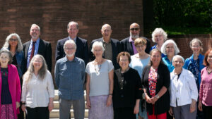 Trinity College faculty and staff members who retired in 2020, 2021, and 2022 were honored recently at a luncheon on the Jacobs Life Sciences Center Quad. The May 25 reception included words of appreciation from President Joanne Berger-Sweeney and remarks from colleagues about the honorees.