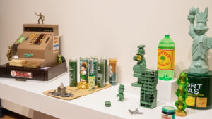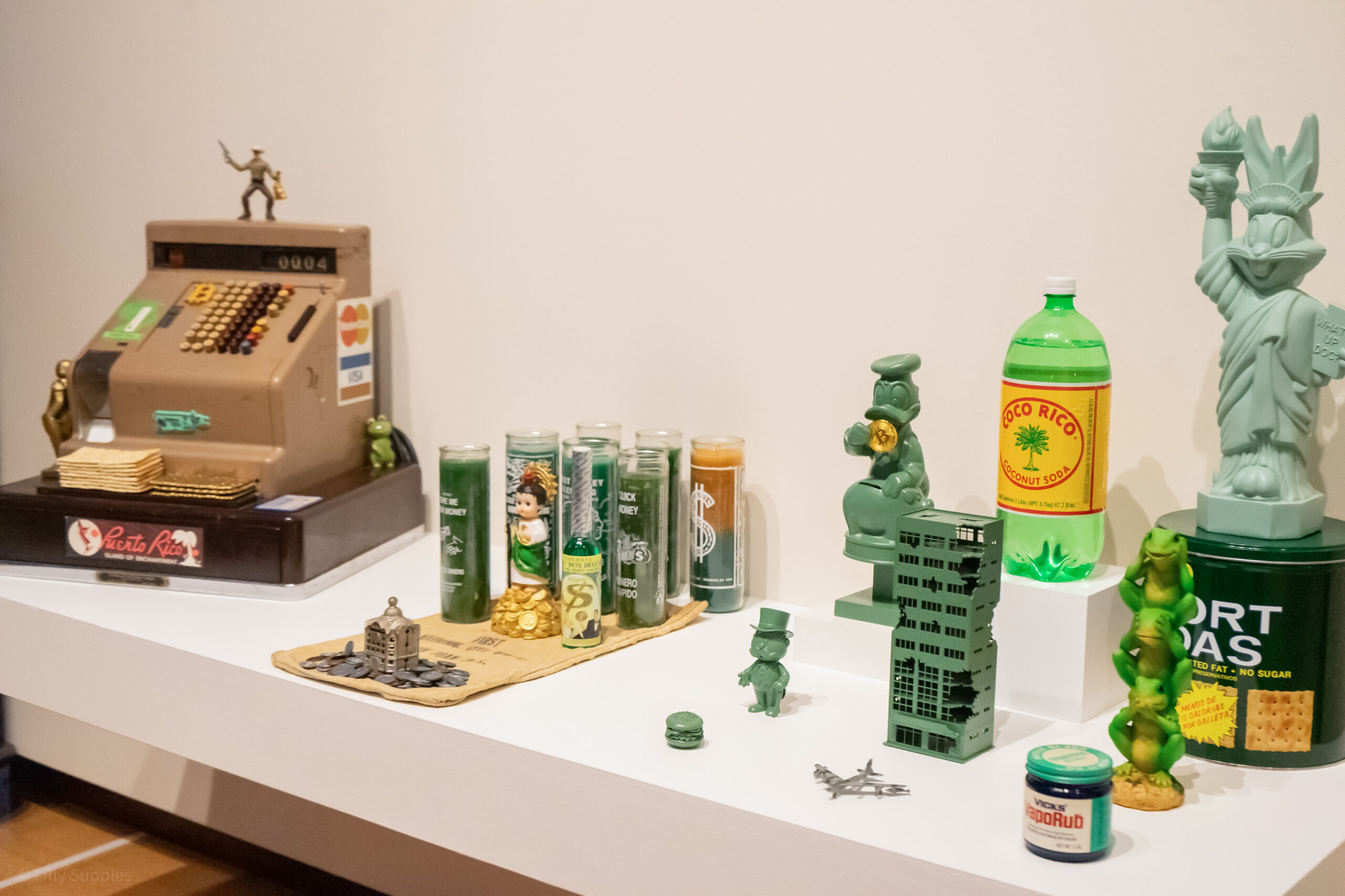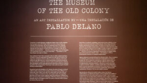 The title of the exhibit, The Museum of the Old Colony, is in part an ironic reference to Old Colony soda, which Delano recalls from his childhood in Puerto Rico. Delano said that the grape-flavored beverage—despite grapes not growing on the island—features a Revolutionary War soldier on its label. For Delano, the soda became a metaphor for colonial consumption: an imported product wrapped in militaristic symbolism, embraced without questioning its implications.