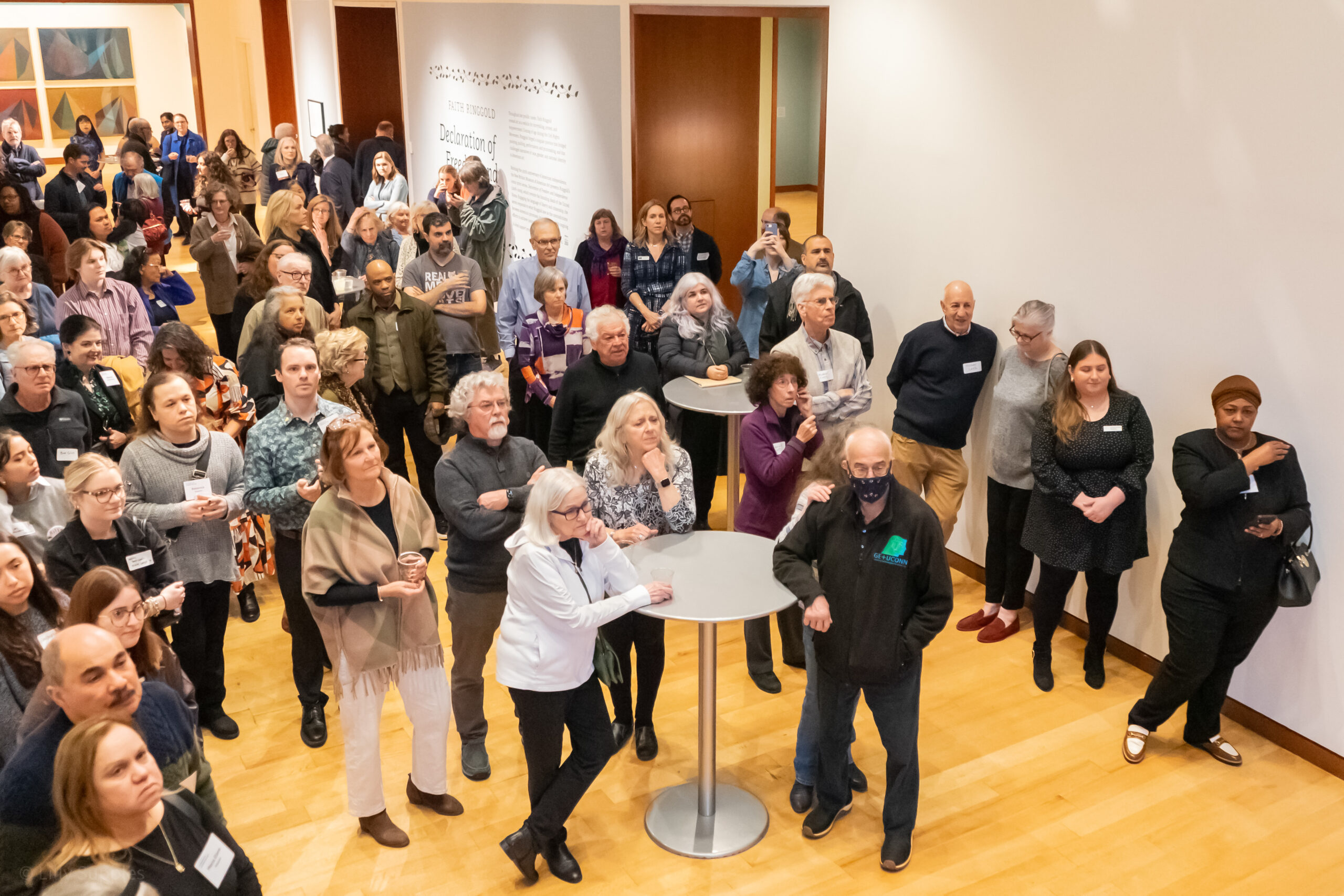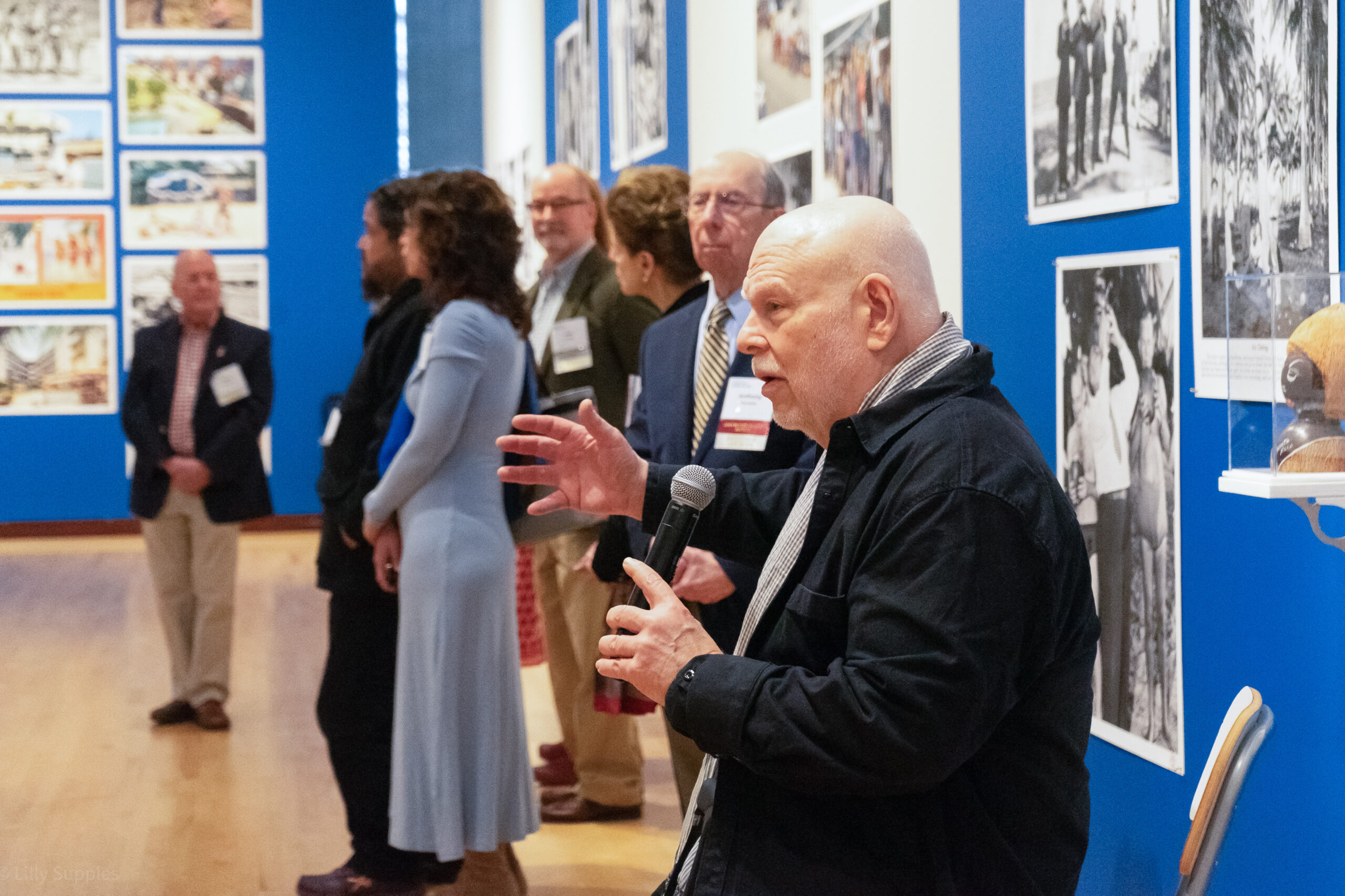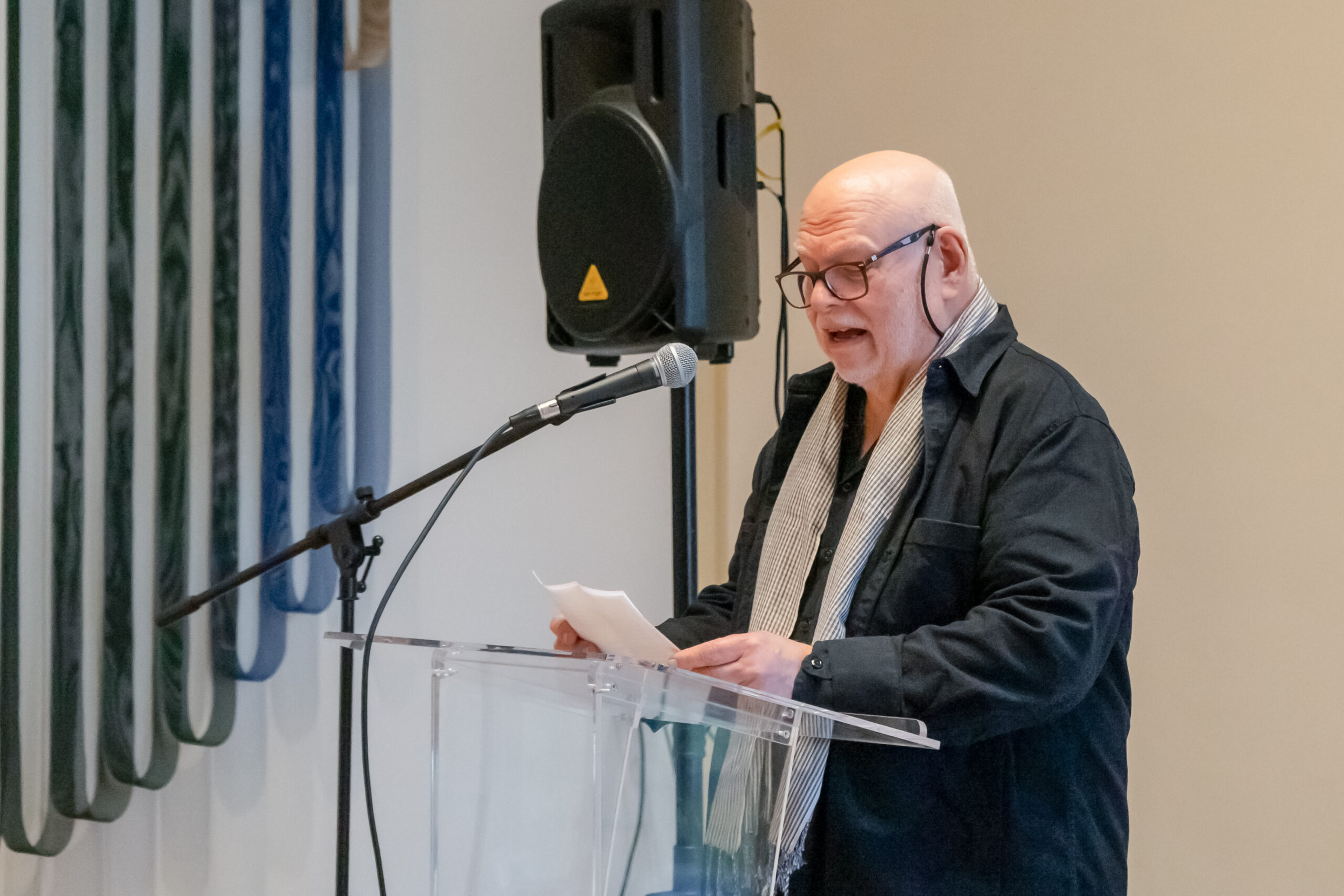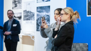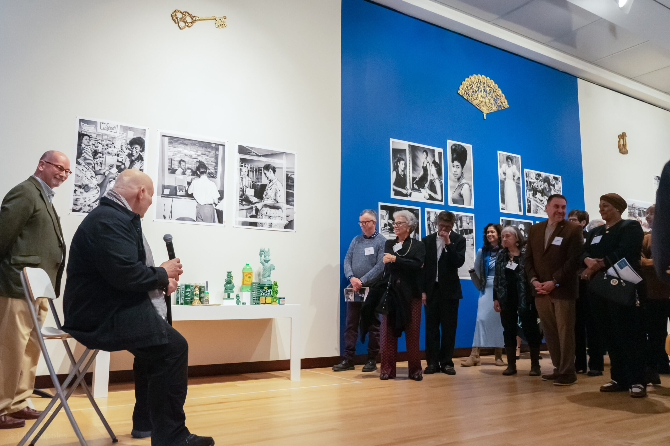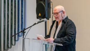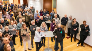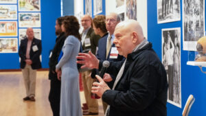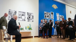 Professor of Fine Arts Pablo Delano speaks at his opening reception on March 12, 2026, at the New Britain Museum of American Art. Photos by Lilly Supples ’26.