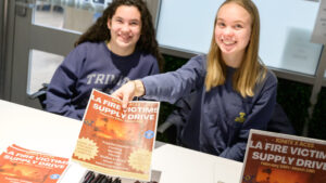 Katherine Meslow ’25, of New Albany, Ohio, developed the idea for the L.A. Fire Victims Supply Drive during winter break, when her vacation flight to L.A. was cancelled because of the ongoing fires in the area.