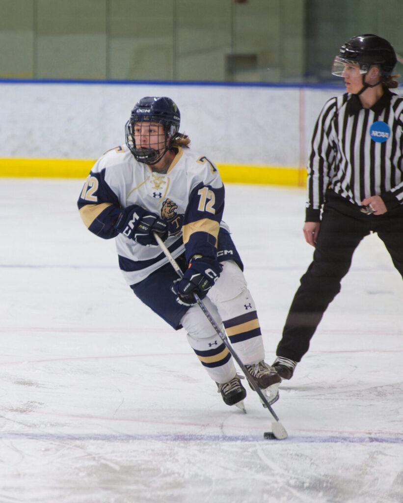I moved by myself to New Jersey in the U.S. when I was almost 18 to play hockey on a club ice hockey team. Trinity reached out to me and caught my eye because it is really good academically. I also really liked Coach Keith [Maurice, head women’s ice hockey coach at Trinity], and I actually never visited before I committed because I already knew a lot of girls on the team. I love the environment, and the fact that I already had friends on the team helped me a lot. The decision was pretty easy to make, to be honest.