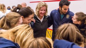 Trinity College Professor of Physical Education and Women’s Squash Head Coach Wendy Bartlett (center).