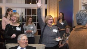 Hundreds of members of the Trinity community gathered recently at 12 different venues around the country (and one in Paris)—with many more participating online—to officially launch Women at the Summit, Trinity’s celebration of 50 years of coeducation. At festive receptions hosted by alumni from Portland, Maine, to Palm Beach, Florida, and from Boston to Seattle (and by President Joanne Berger-Sweeney in Hartford), the college kicked off what will be a three-semester-long set of special occasions, programming, and story-sharing in which the entire Trinity community is invited to participate.