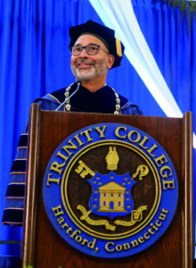 Chair of the Board of Trustees Lisa Bisaccia ’78, who led the ceremony, said, “This occasion marks a milestone in Trinity’s 202-year history—the passing of the torch that will light Trinity’s future.”