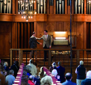 Trinity’s iconic Chapel was the setting for a performance by Christopher Houlihan ’09, John Rose Distinguished College Organist, director of Chapel music, and artist-in-residence. Commentary was delivered by Michael A. Grubb, associate professor of psychology, based on his seminar, “Exploring Awe,” which was offered in collaboration with Houlihan at Trinity’s Rome campus during J-Term 2025 and was scheduled to be offered again in 2026. Grubb said that this unique collaboration is an example of how the arts and sciences can meet.