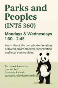 Natural protected areas are a central component of global climate change mitigation strategies, such as the 30×30 framework that seeks to designate 30% of the planet’s surface as protected areas by 2030. This class offers a critical examination of the globalization of environmental conservation by centering the perspectives and experiences of local communities. We will study how environmental conservation has been, and often continues to be, intimately connected with issues of colonialism, land dispossession, Indigenous sovereignty, green capitalism, and militarization. As we study these complicated histories and experiences of parks and Peoples, we will bring into consideration alternative visions of how to care for land and nature with an emphasis on perspectives from Indigenous Peoples and the Peoples of the Global South.