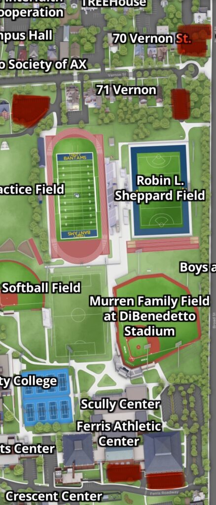 - Ferris Athletic Center Lot (adjacent to the Field House on the south side, parallel to Ferris Drive)